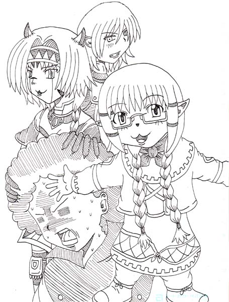 ↑左が今回の冬コミでの表紙、右が前年度の冬コミでの表紙。丁度1年ほどの時を越えた表紙ですが、どう見ても絵の技術的なスキルが上がったようには見えない。お互いに描く時間もなかったといえばなかったですが…、ネタがFF11という時点で、俺には厳しい条件ですね…。今年度は、パソコンでトーンぽく色を付け加えたので、まともに見えるかもしれませぬ。