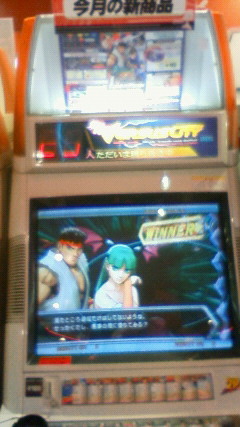 ↑うちの近くの駅前のゲーセン(クラブセガ)でタツノコvsカプコンが稼動していた…。稼働日って…Wii版と同時じゃなかったっけ…。あれ?よく分からない…。ちゃんと稼働日見て無かったかも。とりあえず2回ほどやって来ました。普通にいいんじゃないですか?思ったよりキャラクターは少なかったですけど…。