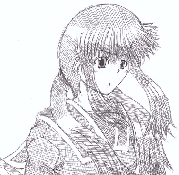 描く気が起きなかったので、過去の没にしたものを修正したものを…。没としてゴッツイ感じになりすぎたです。小太刀っぽいのを持ってたのですが、持ってる影は無く、左下にさりげなく刃物っぽいのがチラリ。