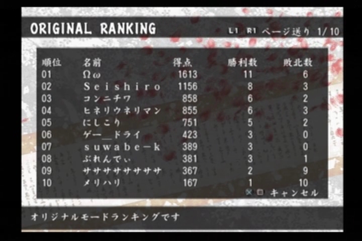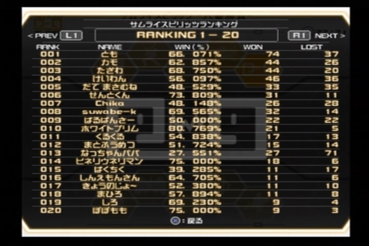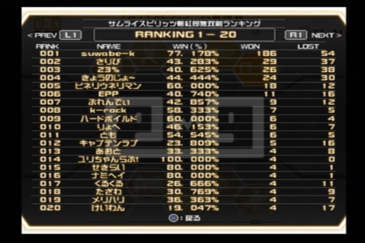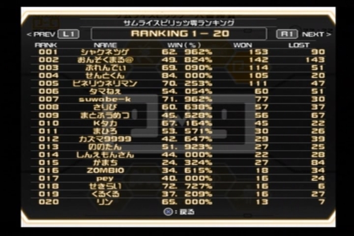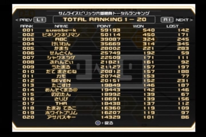 凄く今更な話題。ランキングを撮りました。ビビッタのは、天下一剣客伝とその他(零~無印)とはオンライン対戦を行う場所が違ったこと。天サムをやっていると、その他(零~無印)が遊べず。その他(零~無印)をやっていると、天サムが遊べない…。こんな仕様で良いものなのか…。