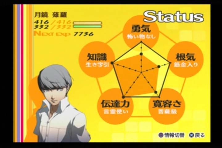 最近コレしかやってませんが、前回同様クリア予定時間100時間越えの見込みで頑張ってます。現在最後の仲間?を助ける為に行動を開始しているところです。物語の謎が深まるばかりですね。あと、コミュが二人MAXになりました。まさか付き合う付き合わない選択肢がでるとは…。知らずにボタンを押していたら千枝と付き合うことになってしまって驚き。まあ、他のキャラより好きなので結果オーライ。でも現実自分と比べると、ブルー。仲間キャラのコミュがMAXになると、ああなるのですね…なるほどなぁ~…。