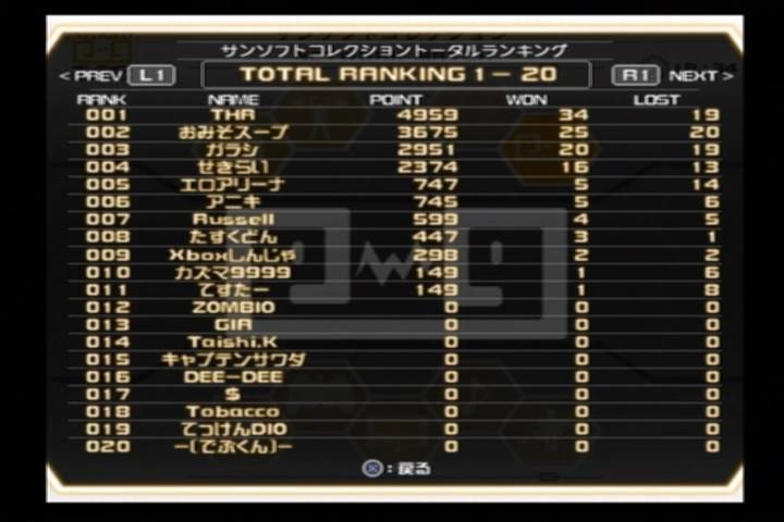 ↑左:サンソフトコレメインメニュー 右:サンソフトコレ個人戦績