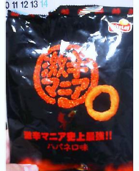 新発売と書いてあったので、セブンイレブンで『激辛マニア』という菓子を買いました。激辛評論マニアではないですよ。マニアというだけあって、辛いと思います。辛い系のモノって、一口食べただけでは辛さがすぐに伝わらなかったりするじゃないですか。でも、これは一口で辛さを実感できる菓子だと思います。辛すぎるモノって、辛い!というか痛い!って感じになりますが、比較的痛い!です。なんか、忍空の風助の舌の様な状態になりました。そういえば…間違って、あくまで間違って落としてしまった分を、猫か犬か、はたまたカラスが食べたら…可哀想に…。