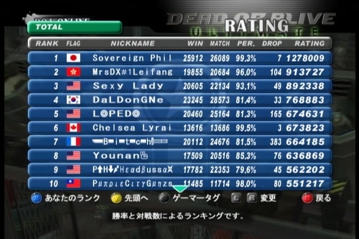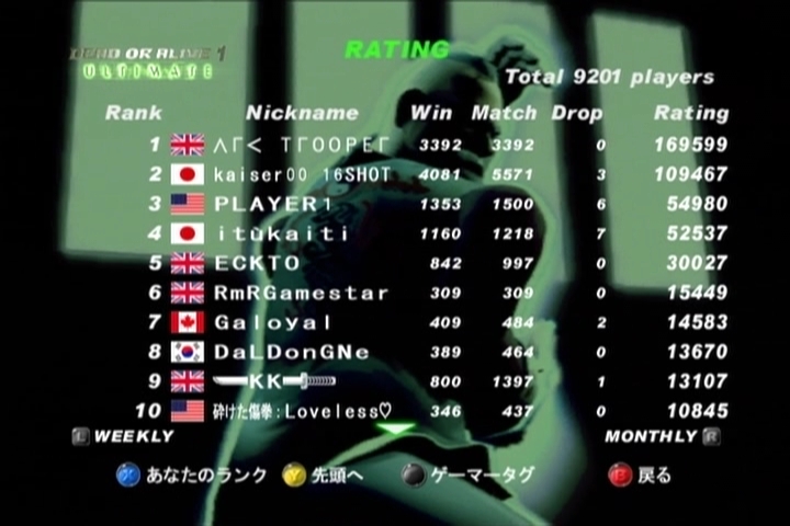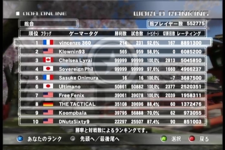 ↑左:(XB360)DOA4 TOPランカー 右:(XB)DOA2 UM TOPランカー
