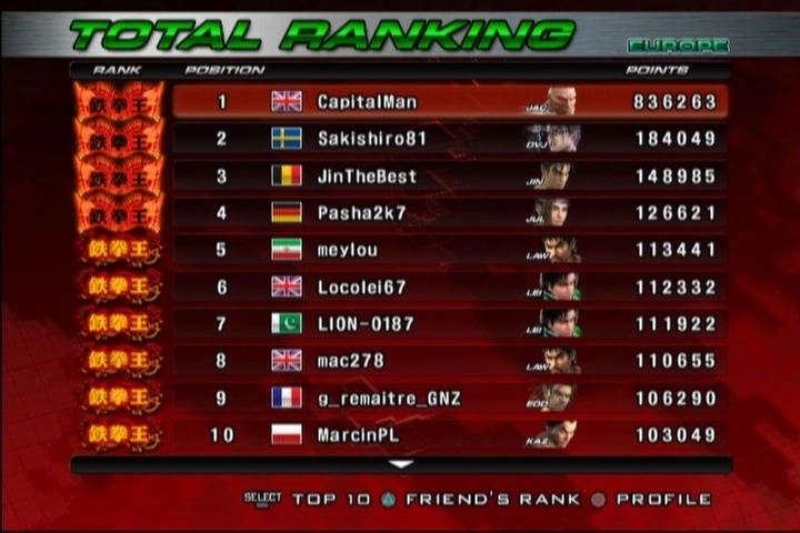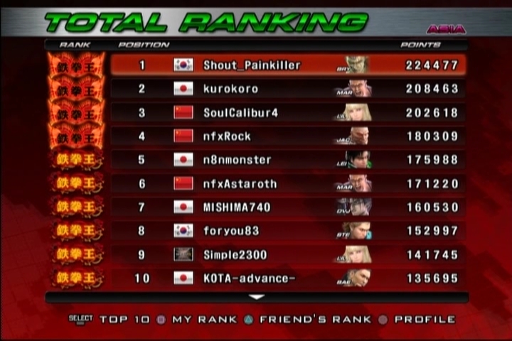 ↑左:鉄拳5DRアジアTOPランカー 右:鉄拳5DR北米TOPランカー