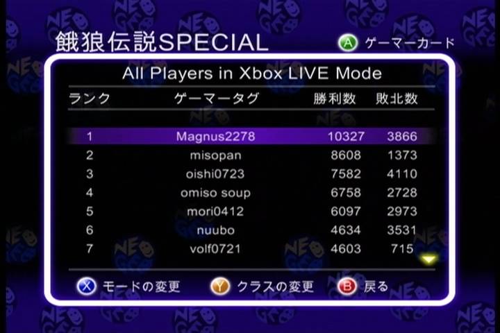 ↑左:餓狼MOW TOPランカー 右:360版 餓狼伝説SP TOPランカー