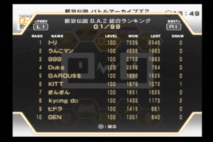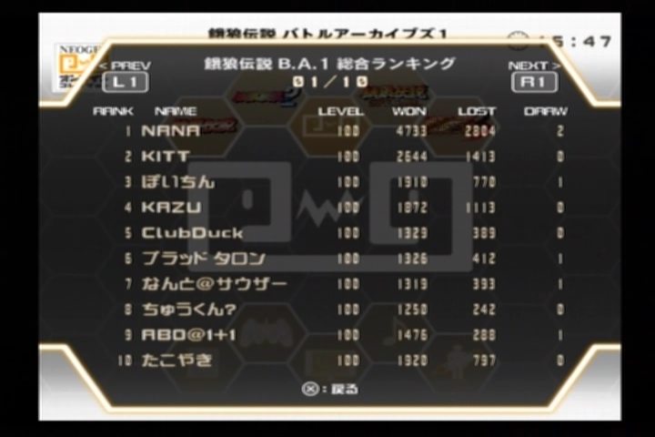 ↓左:餓狼伝説BA1 TOPランカー 右:餓狼伝説BA2 TOPランカー