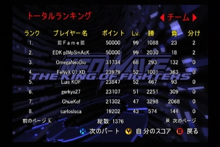 ↓左:XB版KOF NEOWAVE TOPランカー 右:XB版KOF2002TOPランカー