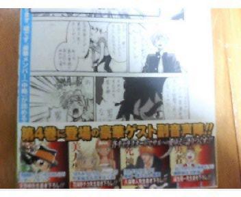 今回の副音声ゲストが意外にも多人数で驚きました。家庭教師ヒットマンリボーンのキャラクターが、【ちゃおっす】【十代目】【果てろ!】【時雨蒼燕流】【噛み殺す】【クフフ…】【ボス…】【ガハハ!】【はひっ!?】【ブラコン】【う゛お゛ぉい!】【だぴょん!】【めんどい…】【餃子拳】【ランキング星】が出まして、今回喋れなかった人に『ママン』『跳ね馬』『拙者』が描かれていました(うすた京介大先生の絵で)。このメンバーで、すごいよ!マサルさんの物語にそってツッコミを入れていくのですから、内容はけっこう濃いかもしれません。本文にすごいよ!マサルさん層の人間は、リボーンを見てないという理由で、けっこうキャラが壊れている部分があるのは見所ですね。『毒サソリ』『極限』は、用事でこれないという扱い。『極限』は、守護者の一人で、重要な仲間キャラクターにも関わらず、彼の影も形も無いという…。なんという人気の無さなんだ…。