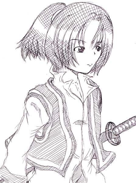 ↑イラストは月華の剣士より、SNKゲーム好きキャラランキング2位『楓』(仮)です。幼くなりすぎました。いや、それより酷いのが刀…刀が…武器は…武器はダメなのです…。ちなみに3位は緋雨閑丸です。既存キャラを描いていて思いました、オリジナルキャラより、版権キャラの方が、評価されなかった時きつい事が判明。要するに『似てない』『下手だ』『誰だか気づかなかった』という時ですね。でもうちのサイトは評価以前に人がいない気がしますが、ちゃんと見てくれてる方がいらっしゃるので、ヘブン状態です。